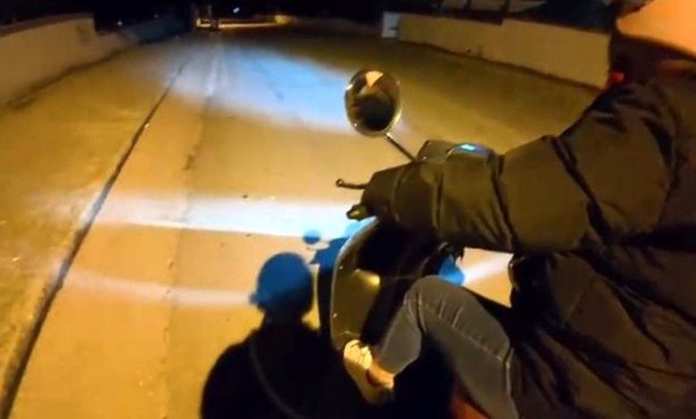 Bir genç, annesine motosiklet sürmeyi öğretirken gece saatlerinde güvenliğin ön planda olduğu sakin bir alanda pratik yaptı. Kaskına takılı kamera, süreci anbean kaydetti ve öğrenme süreci boyunca anne ile oğlunun iletişimi net bir şekilde görüldü.
