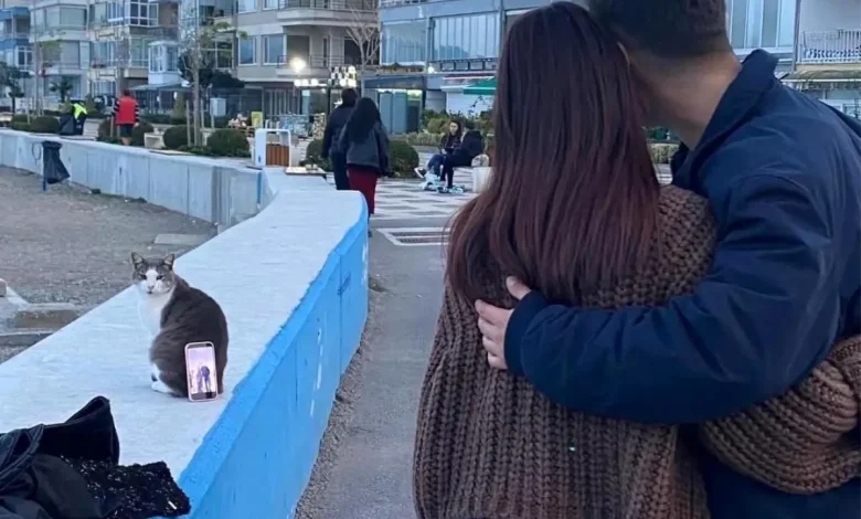 Mudanya sahilinde, fotoğraf çekimi için çevrede yardımcı bulamayan bir çift, sıra dışı bir yöntem denedi. Deniz kıyısında oturma alanında sakin duran bir kedinin yanına telefonunu yerleştiren çift, kediyi tripod gibi kullanarak kareler elde etti. Kedinin duruşunun sabitliği, çekimlerin akıcı bir şekilde gerçekleşmesini sağladı ve ortaya samimi görüntüler çıktı.