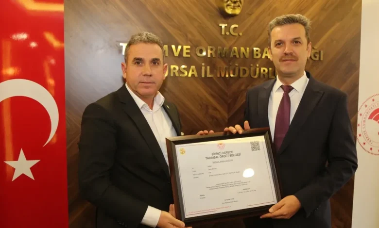 Bursada 7 Tarımsal Örgüte Birinci Derece Belge