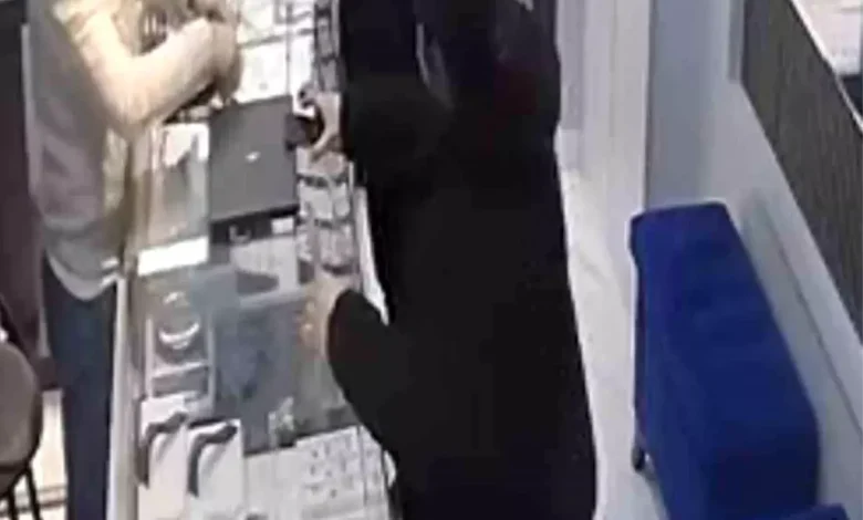 Bir şüpheli, maskeli şekilde kuyumcu dükkanına girerek avuç içi bakışmalar sonrası kararsız hareketlerle silahını üzerindeki talebe yönlendirdi. Altınları talep eden saldırgan, işletmenin güvenlik alarmını tetikleyen müşterinin panik butonuna basılmasıyla kısa sürede dükkândan kaçtı. Olay güvenlik kameralarına anbean yansıdı.