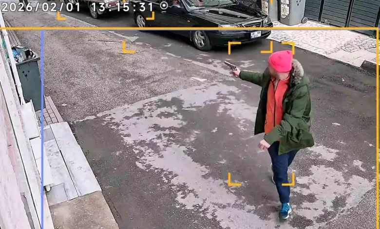 Olay anı güvenlik kameralarına yansıdı; görüntülerde şüphelinin kayınpabası ile karşı karşıya geldiği ve silahını çekerek ateş ettiği görüldü.