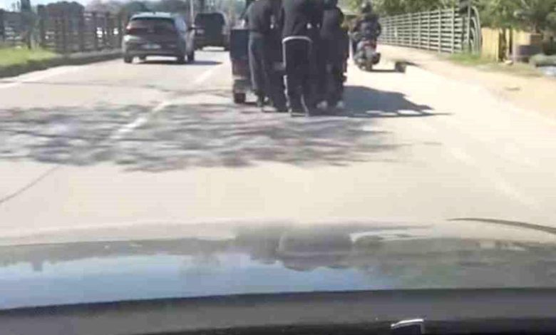 Geçit Mahallesi Sanayi Caddesi üzerinde ilerleyen bir kamyonetin arkasına tutunan gençlerin, uzun bir süre bu şekilde seyahat ettiği görüldü. Bu davranış hem kendi canlarını hem de trafikteki diğer sürücüleri tehlikeye attı. O anlar, bir vatandaşın cep telefonu kamerasına yansıdı.
