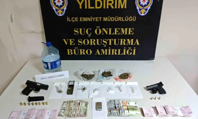 Yıldırım ilçesinde yürütülen çalışma sonucu, adı geçen şüphelilerin ikametinde uyuşturucu ticareti yapıldığı ve ruhsatsız silah bulundurulduğu belirlendi. Ekipler, adresin güvenliğini korumak amacıyla dikkatli bir baskın gerçekleştirdi ve şüphelilerle birlikte olay yerinde bulunanlar da gözaltına alındı.